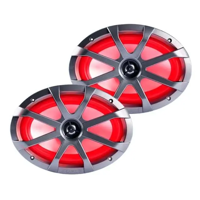 MXA69L speakers are water and element resistant and designed to perform in extreme environments.  From boats, to powersports equipment to off-road vehicle, These 6×9″ speakers provide amazing sound and deep bass even in open air environments.  MXA gear is UV coated to withstand the harsh sunlight for long days on the lake or trails and are salt tested for corrosion for ocean applications.  The MXA69L ships with protective grills in both gunmetal and white with removable protective mesh inserts.  Each set of MXA69L speakers features integrated RGB LED technology to bring your equipment to life when the sun goes down.