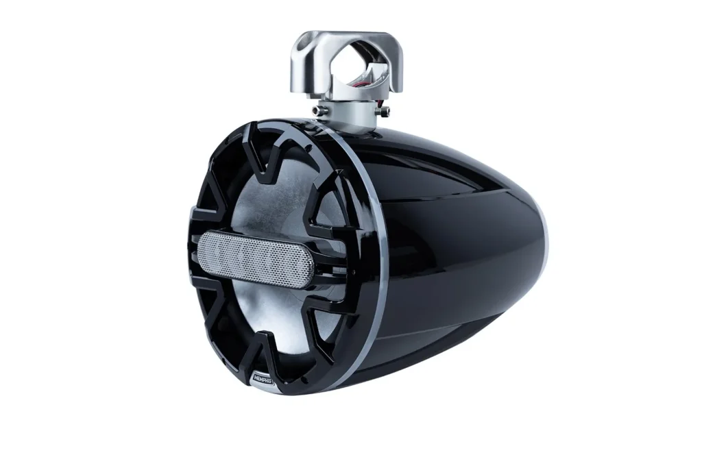Memphis 10″ tower speakers with ATAC™ Technology are unlike anything ever done in the world of tower speakers. The Advanced Tower Array Construction (ATAC™) utilizes a curved array tweeter design mounted on a bridge across the front of the speaker. This design is similar to designs seen in concert line array dispersion systems used to fill arenas with intense accurate sound reproduction. This technology is superior to traditional compression horn tower speakers in terms of sound quality, performance and durability. A standard compression horn speaker requires a horn tweeter to intersect the woofer inside the tower. This results in a gap which requires a gasket. This gasket reduces the effective surface area of the woofer and also ads weight to the woofer making it less efficient. These two factors result in less output from a traditional ccompression horn tweeter. The ATAC™ design maximizes the surface area of the woofer for increased output and mid bass. This design also allows the woofer to ve fully sealed which prevents water and debris from entering into the tower speaker. This fully sealed design is imperative in terms of durability in marine and saltwater applications. The curved tweeter array design also allows for maximum dispersion of sound. The 4 tweeter design is capable of churning out massive sound which is unrivaled by any compression horn tower speaker in its class in terms of clarity, output at any angle from behind your boat.