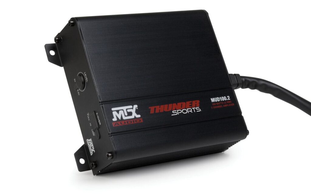 The MTX MUD100.2 is the most compact amplifier that MTX has ever made. This unit features full range class D topology that delivers exceptional sound quality and excellent thermal efficiency. The unit includes 2 channels that are capable of delivering 100 watts of RMS power per channel. More than enough power to drive a single or dual full range speakers per channel.