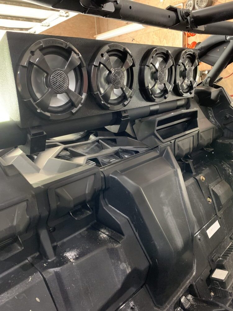 HERE IS OUR LATEST OVERKILL SOLUTON FOR THE X3! ITS A DIRECT BOLT ON TO STOCK CAGE BOLTS AND DELIVERS SUPERB SOUND VOLUME AND CLARITY THAT NO BRAND OUT OF BOX BAR COMES CLOSE TO. GREAT FOR HOPPED CAGE AND STOCK CAGES AS WELL WITH ALL CONTROLS IN DASH WHICH ELIMINATES THE ANOYING TURNING AROUND TO OPERATE THE OFF SHELF BARS HAVE.